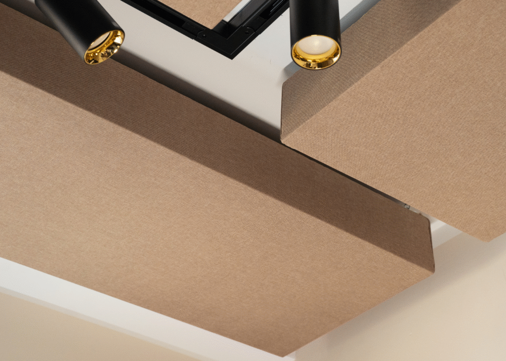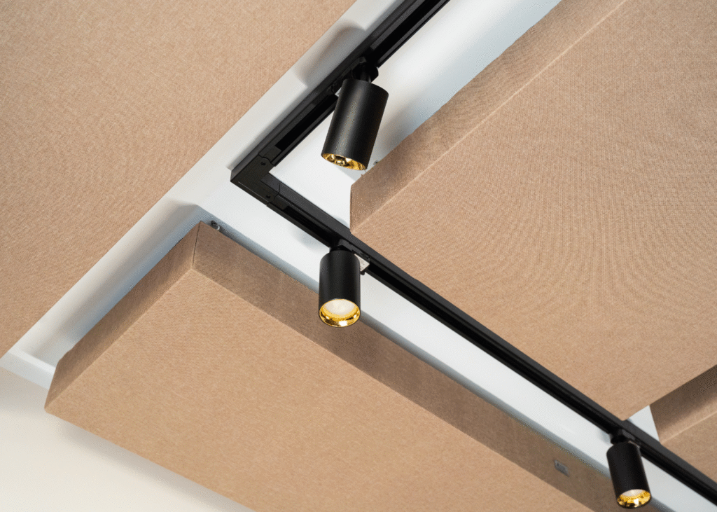 Aby wykonać pełną adaptację akustyczną, często wymagane jest zastosowanie paneli akustycznych nie tylko na ścianach ale również na suficie.